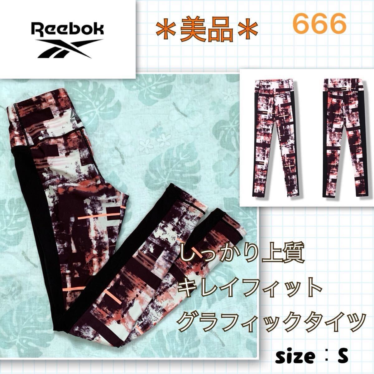 - 6【美品】美尻・美脚 お洒落にスタイルアップ《Reebok》キレイフィット グラフィックタイツ リーボック 和の雰囲気 S 温もりカラー