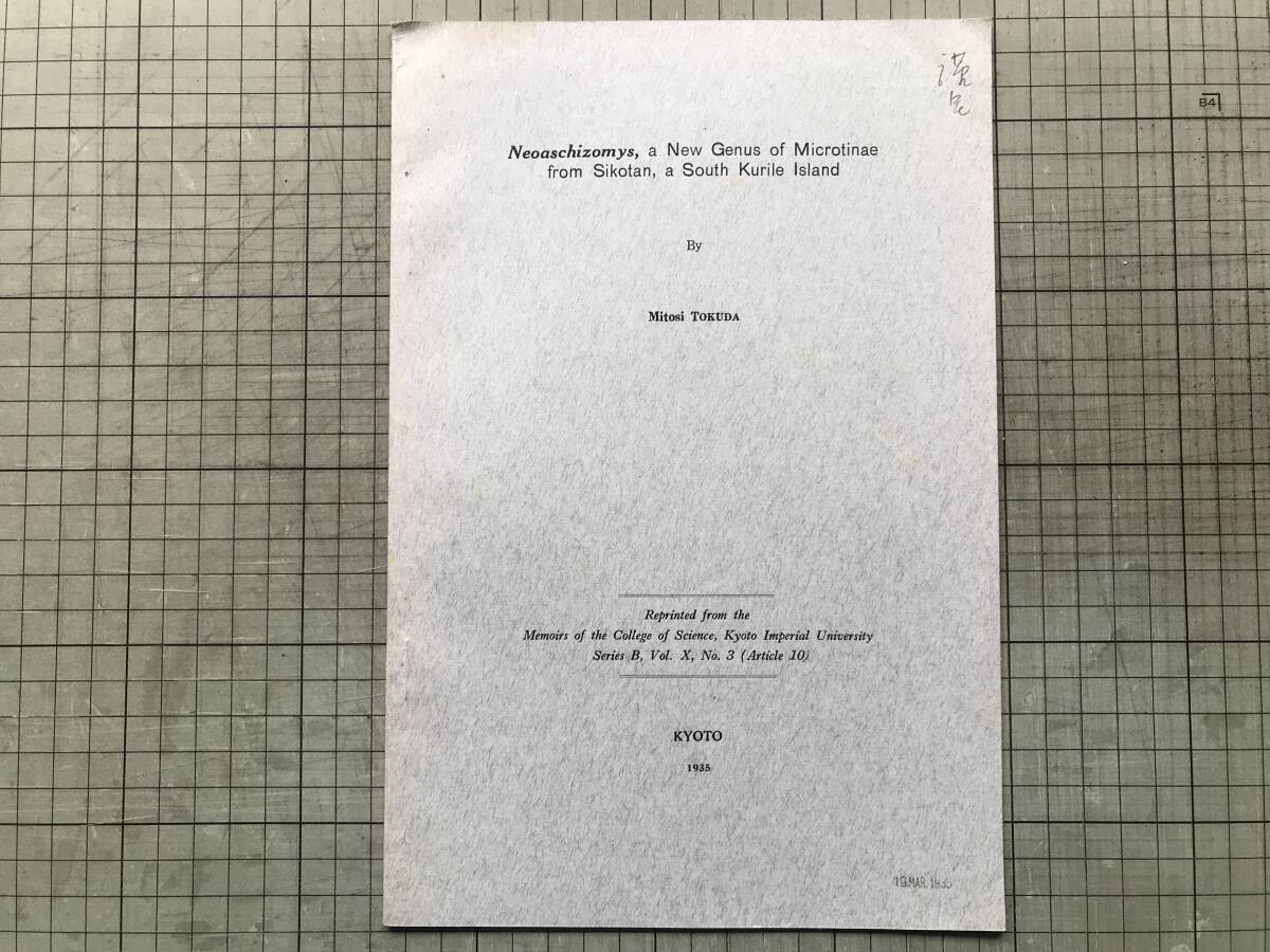 > 『英文 南千島色丹島よりハタネズミ亜科の新属 ”Neoaschizomys” の発見 京都帝国大学理学部紀要 10巻3号 別刷』徳田御稔 1935年刊 00475