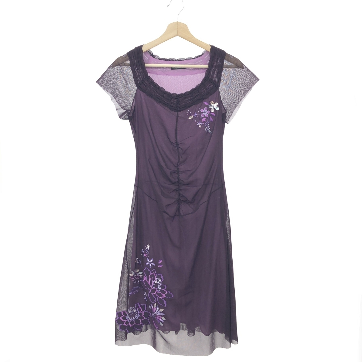 > ◆VIVIENNE TAM ヴィヴィアンタム 半袖ワンピース サイズ:1 花柄刺繍/ビジューデザイン/90s/パワーネット パープル レディース