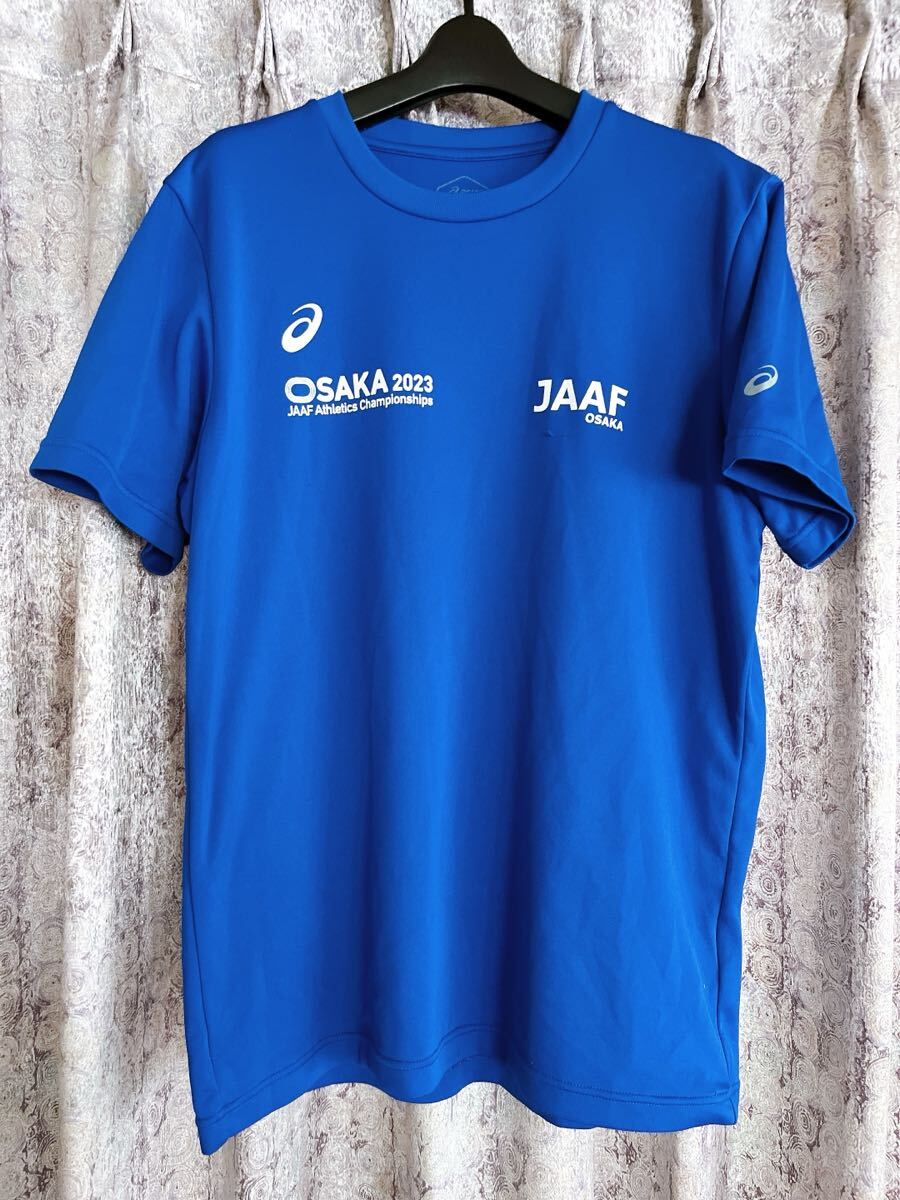 > アシックス asics JAAF 青 シャツ 半袖 Tシャツ ドライ 陸上 トライアスロン クロスカントリー 大阪 関西 osaka 世界陸上 国体 代表 2XL