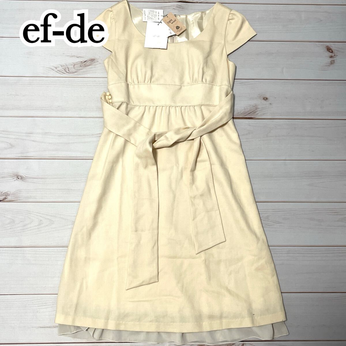 - 新品 未使用 ef-de エフデ レディース ワンピース ウール ノースリーブ フレンチスリーブ ウェストリボン 無地 アイボリー サイズ9 M