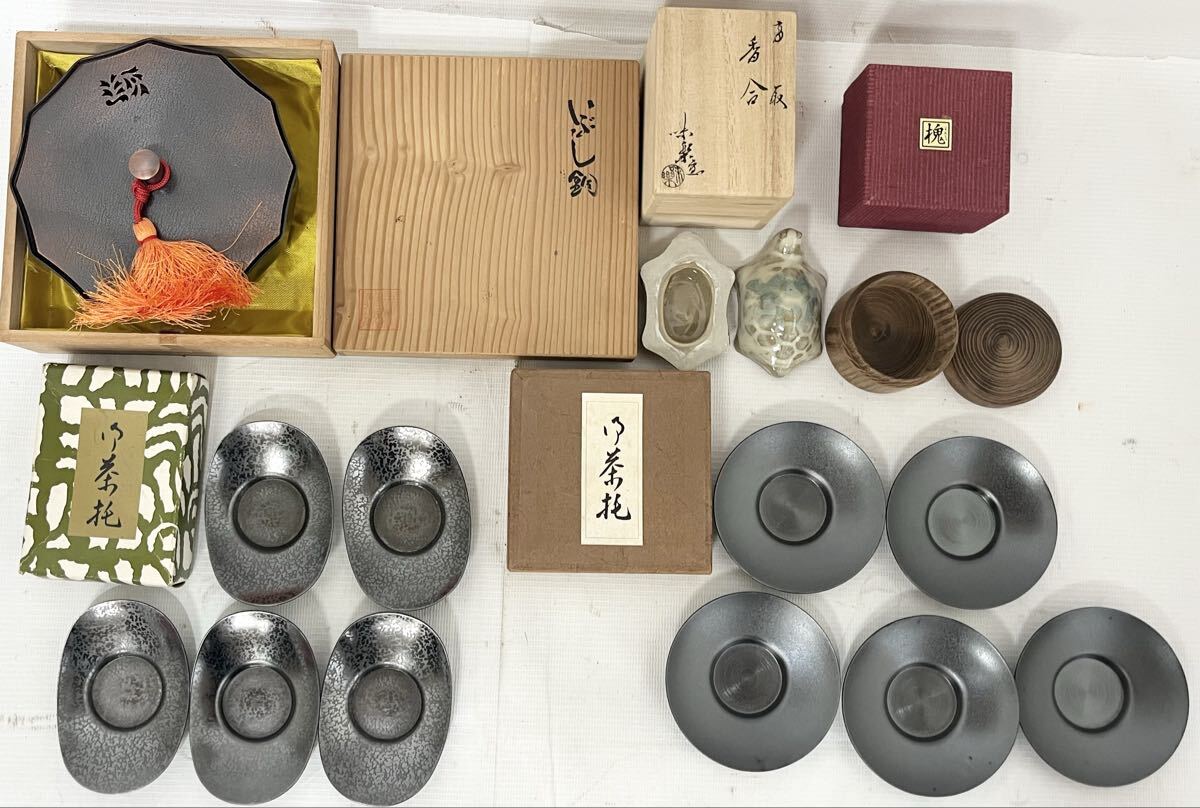 - 秀峯堂 等 茶道具 まとめ 茶托 香合 菓子入 金属工芸 いぶし銅 等