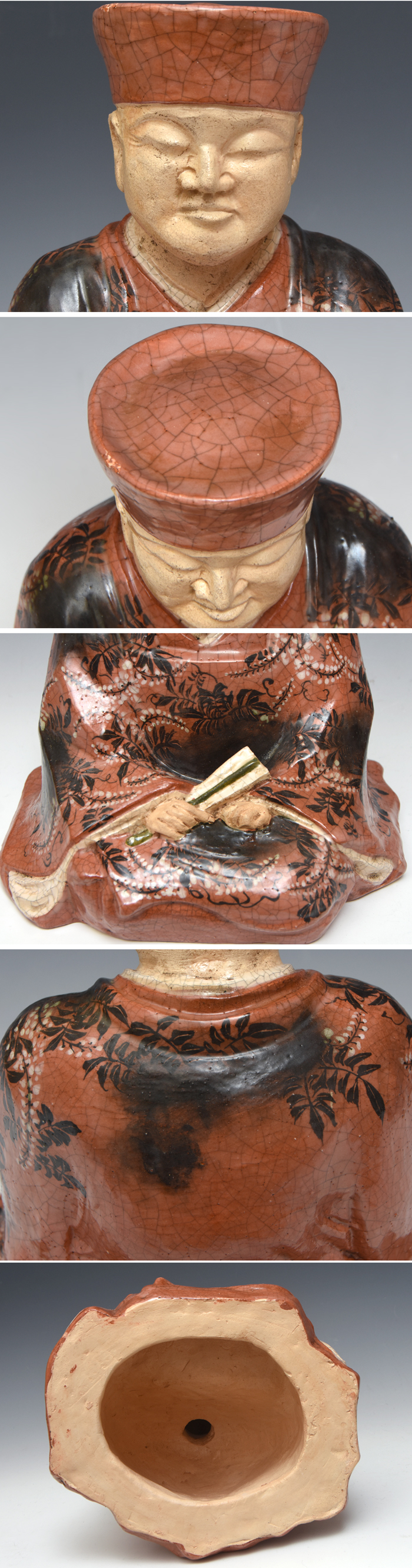 > 佐々木昭楽(造)利休居士像 高さ約26㎝ 陶器 赤楽 楽焼 京焼 人形 置物 共箱 茶道具 煎茶道具 u1088o