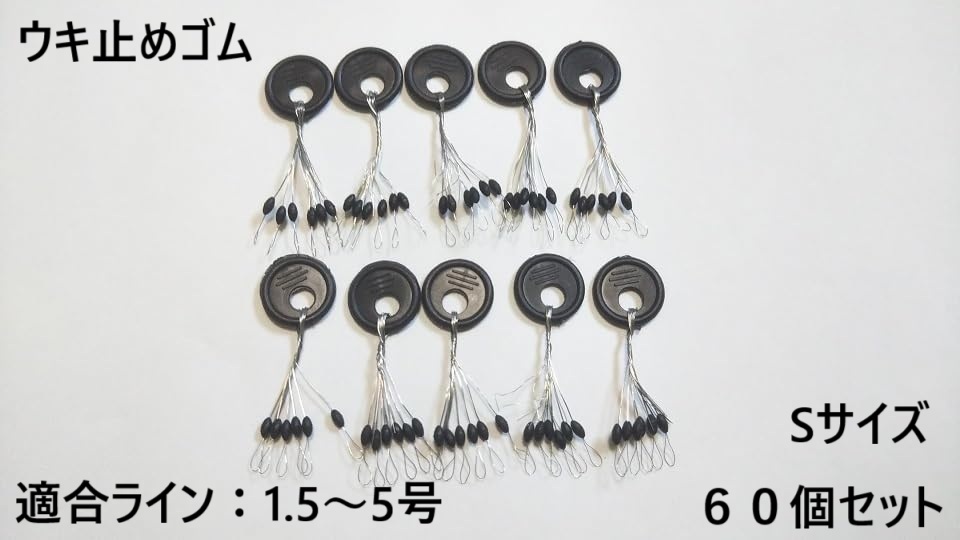 - ウキ止めゴム シンカーストッパー 60個セット Sサイズ テキサスリグ 浮き釣り フカセ釣り オリーブ型 道糸1.5~5号
