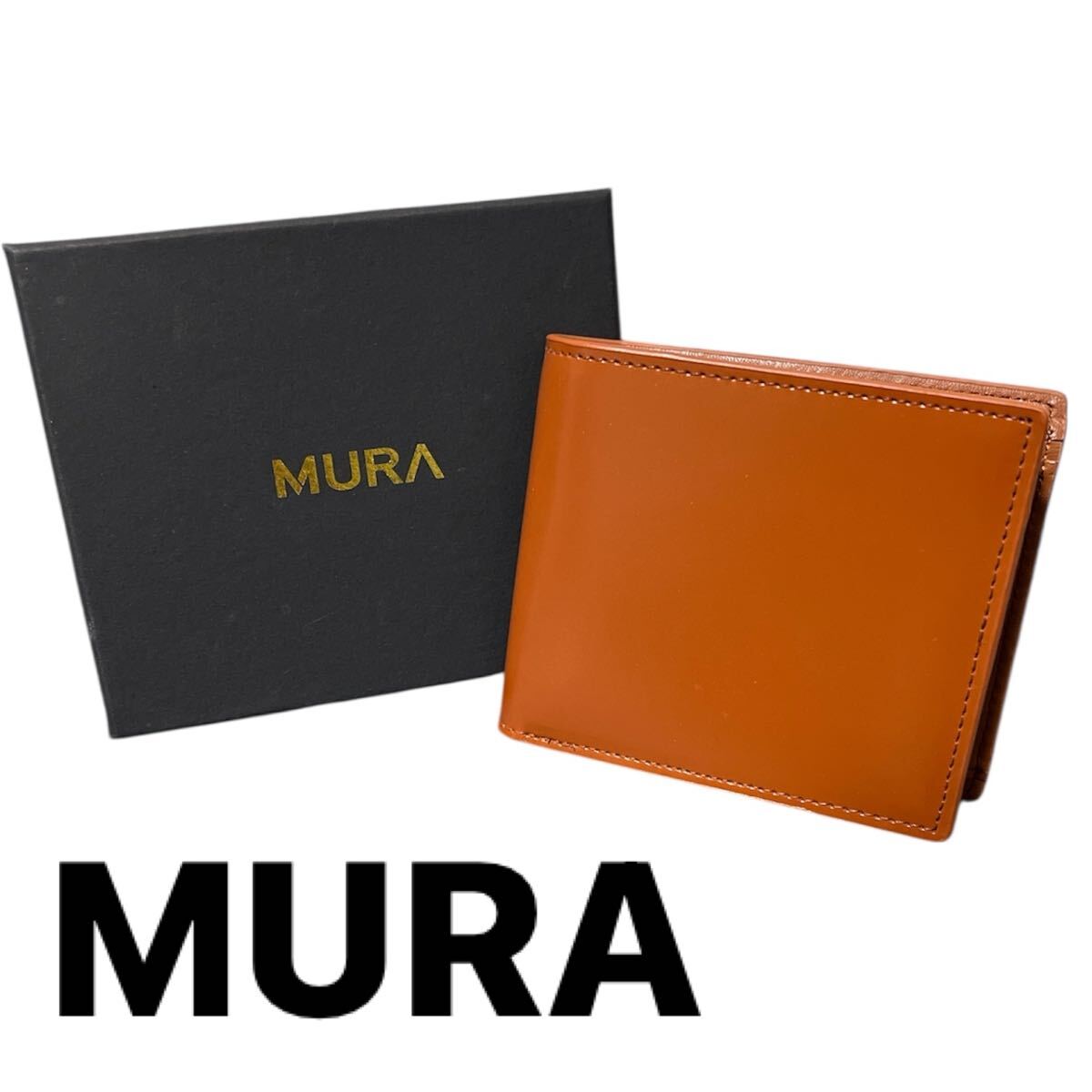 > SI■ 未使用 MURA ムラ 二つ折り財布 茶色 ブラウン 男女兼用 レザー 革 小銭入れあり コンパクト 無地 シンプル 箱入り 小さめ
