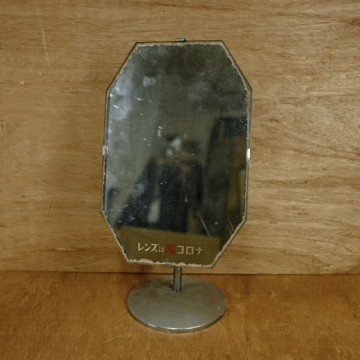 - アンティーク 鏡 眼鏡屋 台付 ミラー ビンテージ 昭和レトロ 古道具 ブリキ看板 当時物 ヴィンテージ ガラクタ