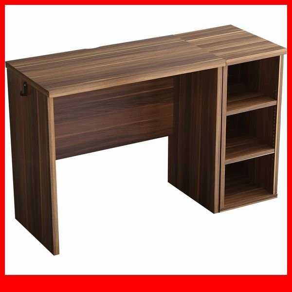 > 机★新品/ヴィンテージ シンプルデスク75cm幅+サイドラック30cm幅/収納棚付き105cm幅万能ワークデスクに/木目調 茶系 ウォールナット/a3