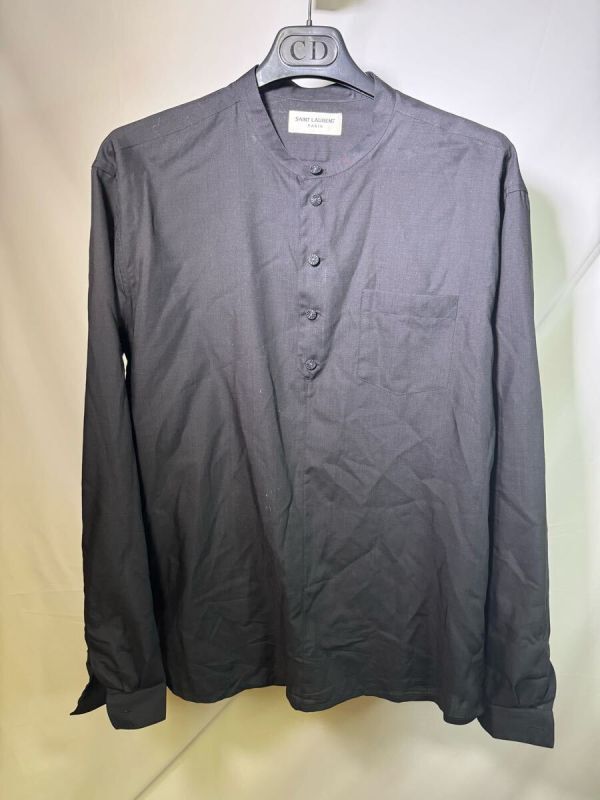 - SAINT LAURENT サンローラン 長袖シャツ シルク ブラック 総柄 Y78