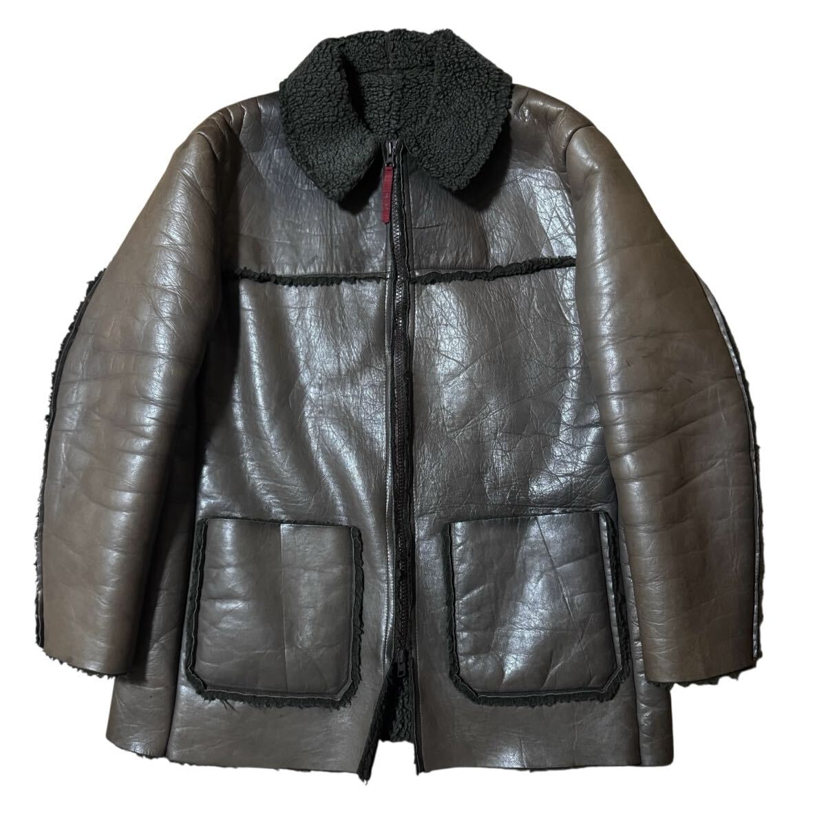 - 291595=HOMME 本革 W-ZIP 裏ボアブルゾン ブラウン サイズⅢ