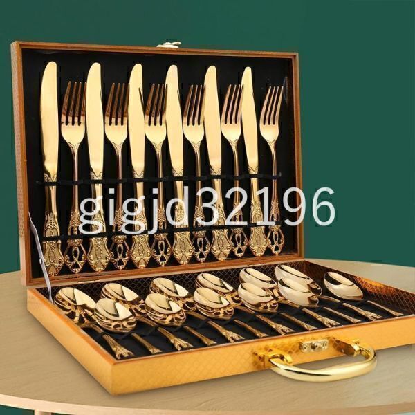 > B7018:◇☆人気新品 高級カトラリー セット24個 食器 柄入り ステンレス鋼 フォーク,ナイフ,スプーン ディナーセット デラックスボックス付
