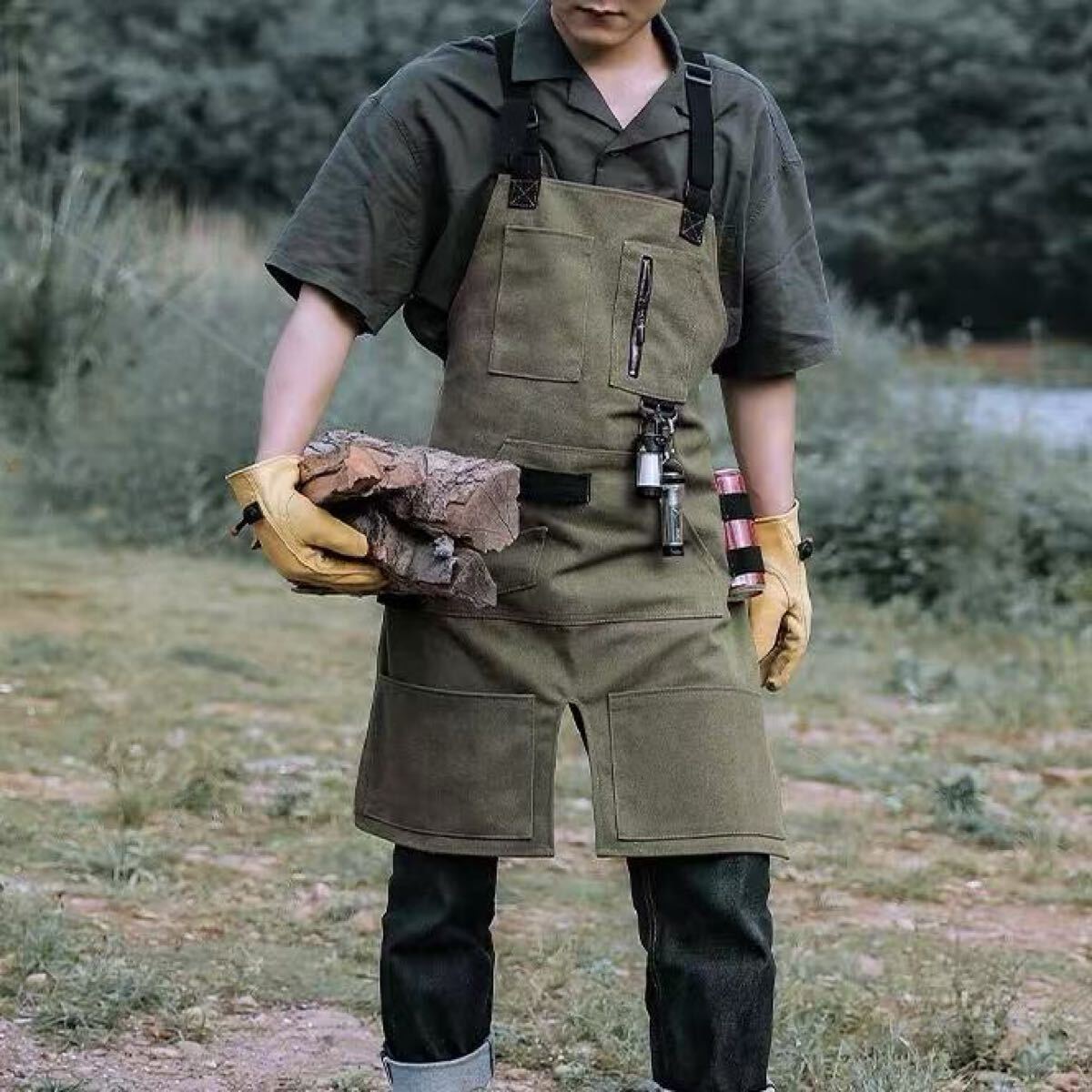 - キャンプ用 超高品質 焚き火エプロン ベスト 重厚生地 キャンプ焚き火 薪割 アウトドア 野外登山 作業