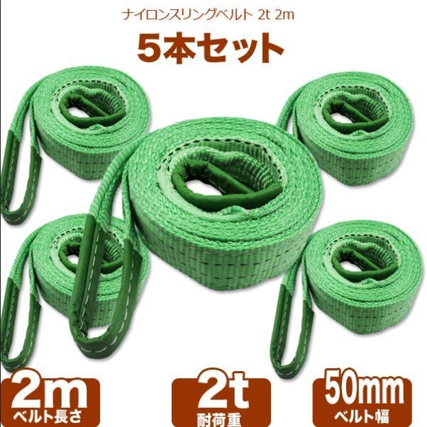 > ★送料無料 強度・耐荷・耐久性に優れた本格派のベルトスリング!運搬用スリング ベルトスリング 2m 耐荷重2t【5本セット】