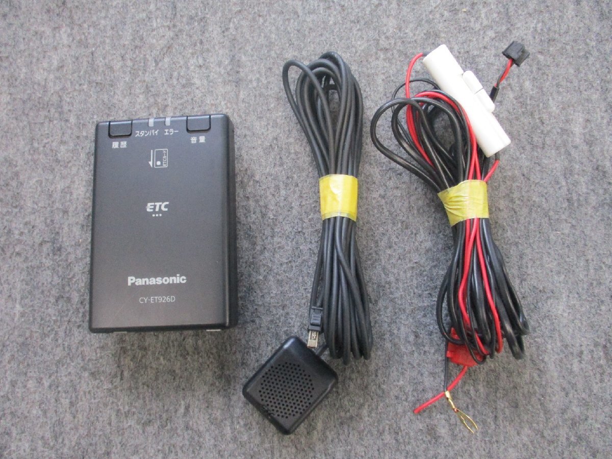 > ▼ レターパックプラス発送 通電OK 普通車外し 新セキュリティ対応 パナソニック アンテナ分離型 ETC CY-ET926D カード有効期限通知 中古品