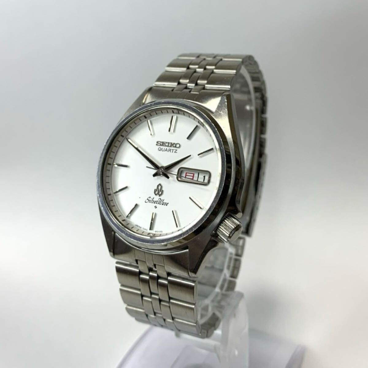 - 【稼働品】 SEIKO セイコー Silver Wave シルバーウェーブ 7546-8010 メンズ 腕時計 クォーツ デイデイト シルバー w858