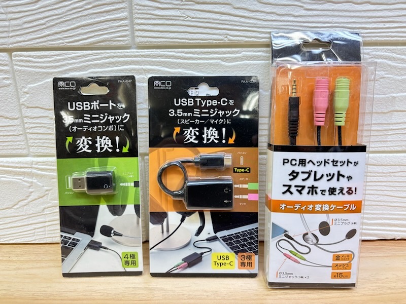 - A744 新品 MCO ミヨシ 様々なヘッドセット ヘッドホンをPC スマホ タブレットで使える 変換アダプタ 3個セット USB 3.5㎜ type-C 3極 4極