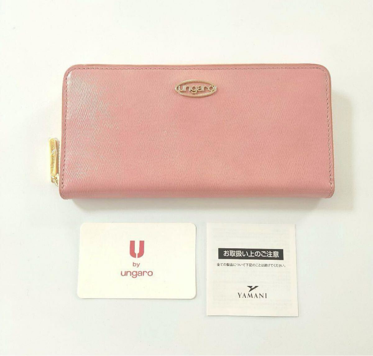 - a 未使用 ユーバイウンガロ 長財布 ピンク レザーウォレット ラウンドファスナー ロングウォレット 本革 牛革