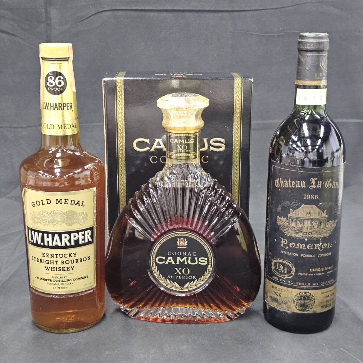 > KIS/030671-2/5000/B102-105/酒 3点まとめ ※同梱不可 I.W.HARPER 43% 750ml/CAMUS XO 40% 700ml/Chateau la Ganne1986 12% 750ml