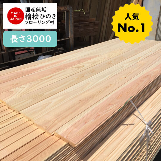 - 1-42-3 【訳ありAB級品/長さ3000】国産 無垢桧ひのき檜ヒノキフローリング 本実加工 無塗装和室DIYリフォーム千葉県引取可