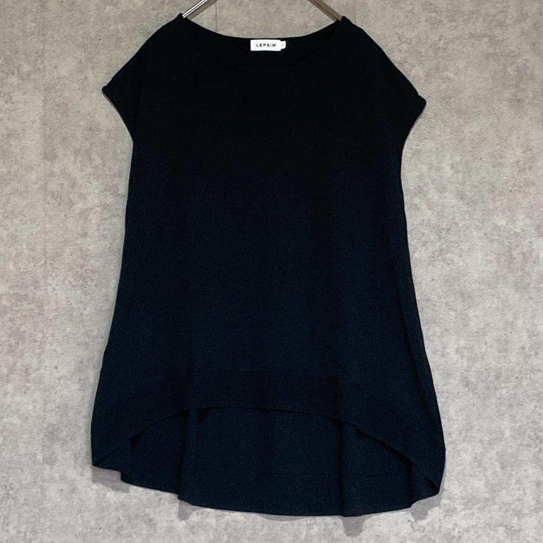 - レプシィム(F)フレンチスリーブサマーニット*Uネック*インナー*前短め*黒