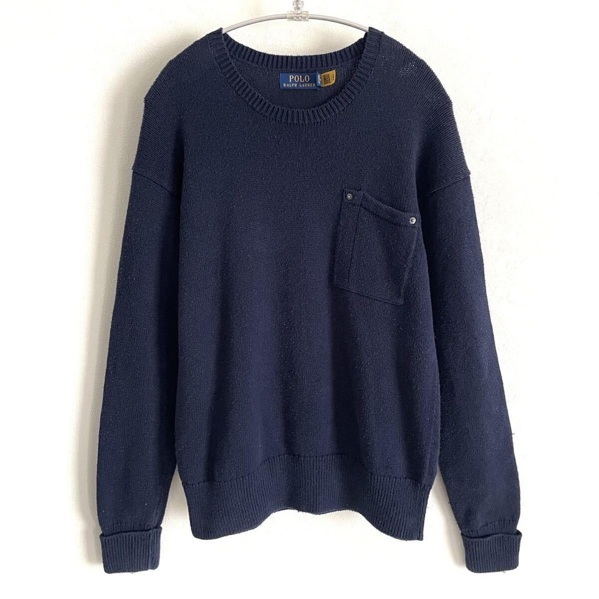 - 【POLO RALPH LAUREN/ポロラルフローレン】コットン素材 ポケット付/クルーネックセーター/ネイビー/S表記/衝撃プライス!アメカジ古着/B55