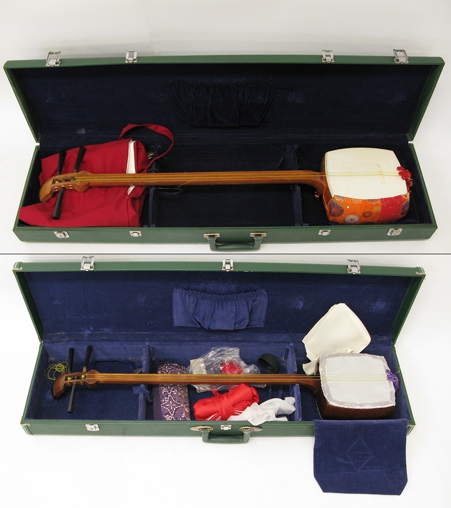 - 三味線 本体 2点まとめて 棹幅約2.5cm 約2.3cm 全長約101cm 約98cm 和楽器 ハードケース付き Kキ66