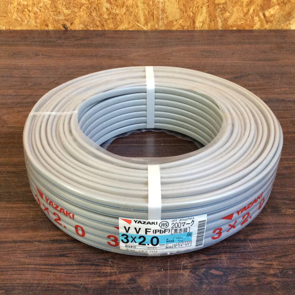 > 【WH-8401】未使用 YAZAKI ヤザキ VVFケーブル 3×2.0mm 2024年製 200マーク 黒赤緑