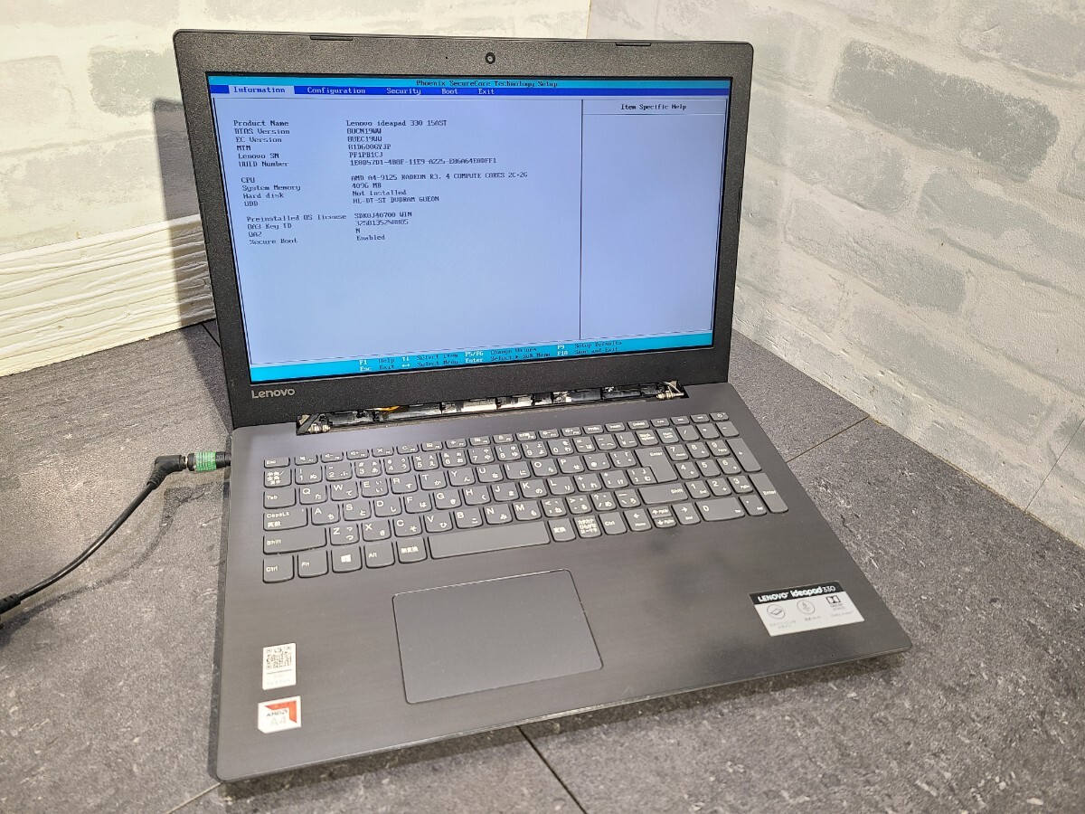 - 【現状品】管2T91 Lenovo IdeaPad 330-15AST 81D6 CPU AMD A4-9125 Bios起動OK HDD無し、HDDマウント有り、メモリー4GB、バッテリー有り