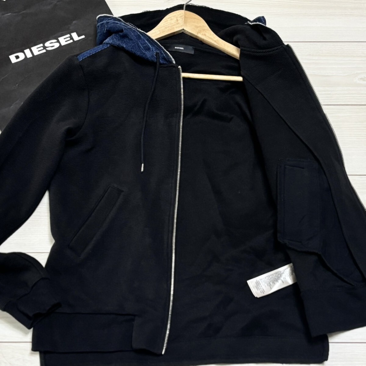 > 極美品/Sサイズ●DIESEL デニム フード ジップ パーカー ヴィンテージ 加工 ZIP 長袖 スウェット ブラック メンズ アウター