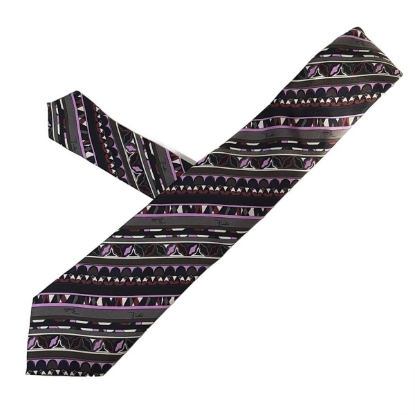 - エミリオプッチ EMILIO PUCCI(PUCCI) - ダークグレー×ピンク×マルチ メンズ レジメンタル 美品 ネクタイ