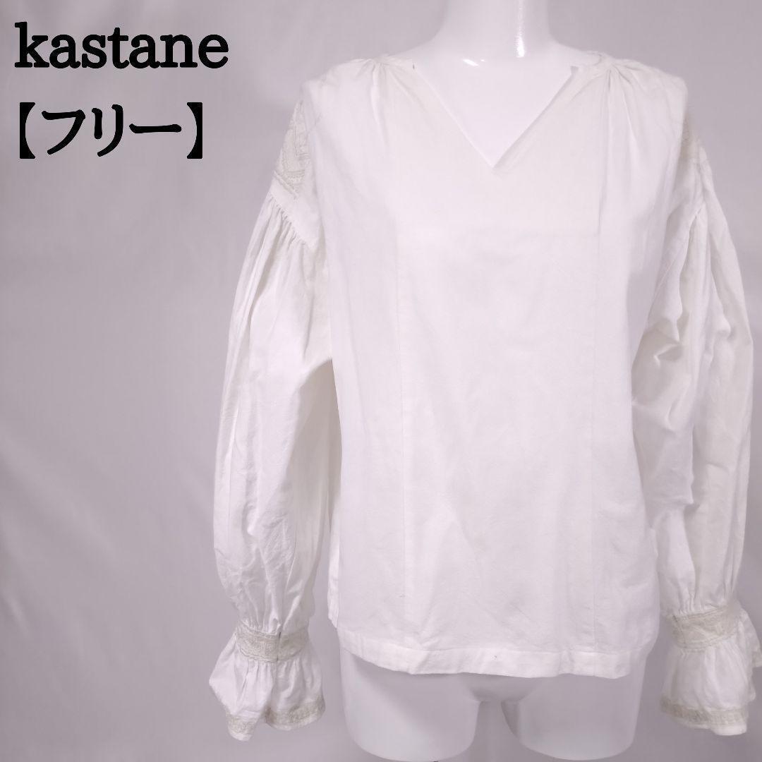 - kastane カスタネ Vネック フリル袖 ブラウス ペイズリー刺 長袖 F 綿100 102h3