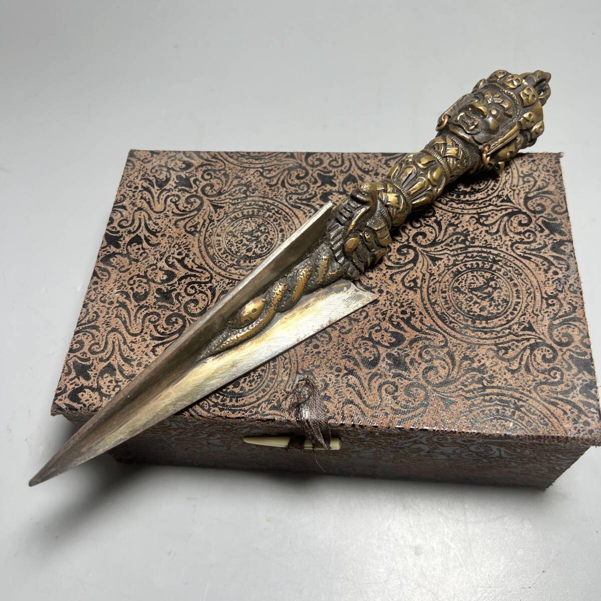 - チベット収集 銅製細作 天鉄嵌 法器 降魔杵 仏具 仏教 逸品仏具 風水賞物 極細工 置物擺件 美術品 旧家蔵出 旧家供養品