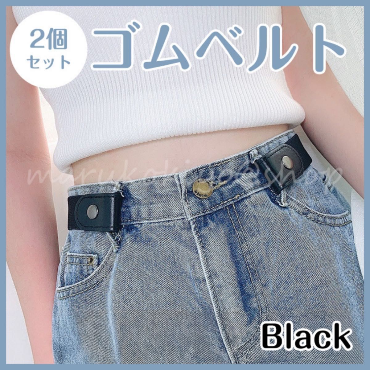 - ノーバックルベルト 2組 ゴムベルト 黒 ブラック 男女兼用 ユニセックス 子供 大人 長さ調整可能 カジュアル シンプル