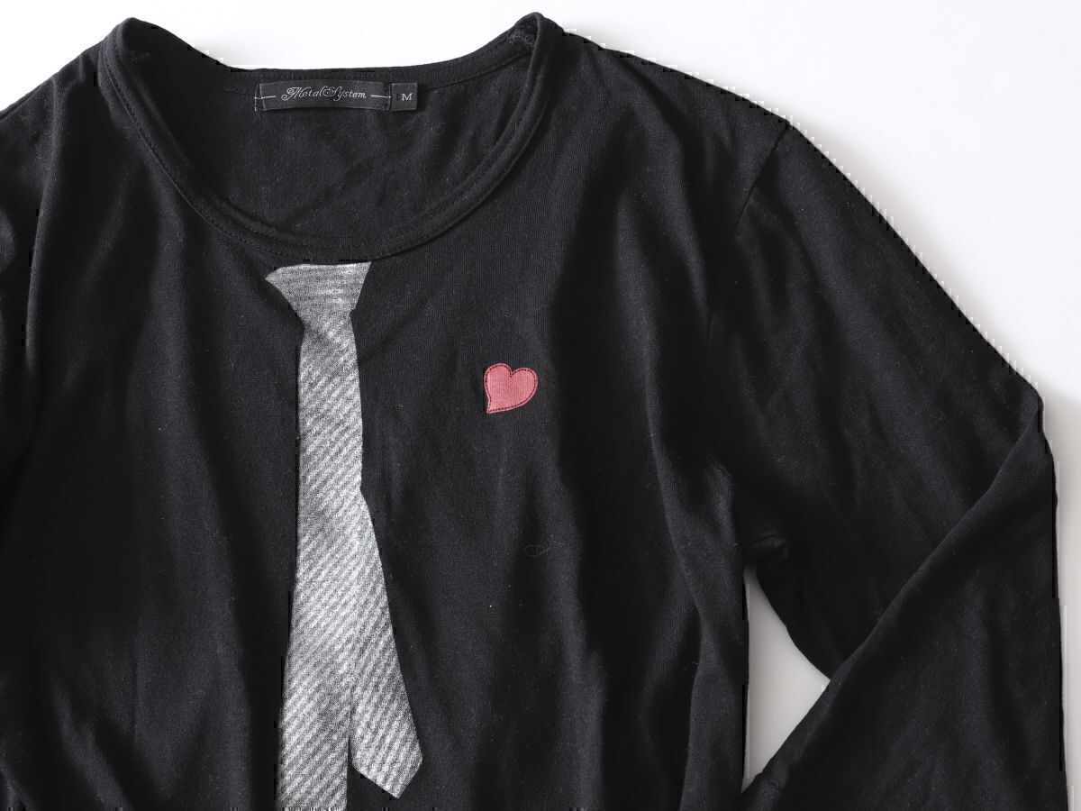 - ★古着★MetalSystem メタルシステム★クルーネック7分丈ネクタイプリントTシャツ★M【64231-001-04】ブラック黒【店頭完売】美品