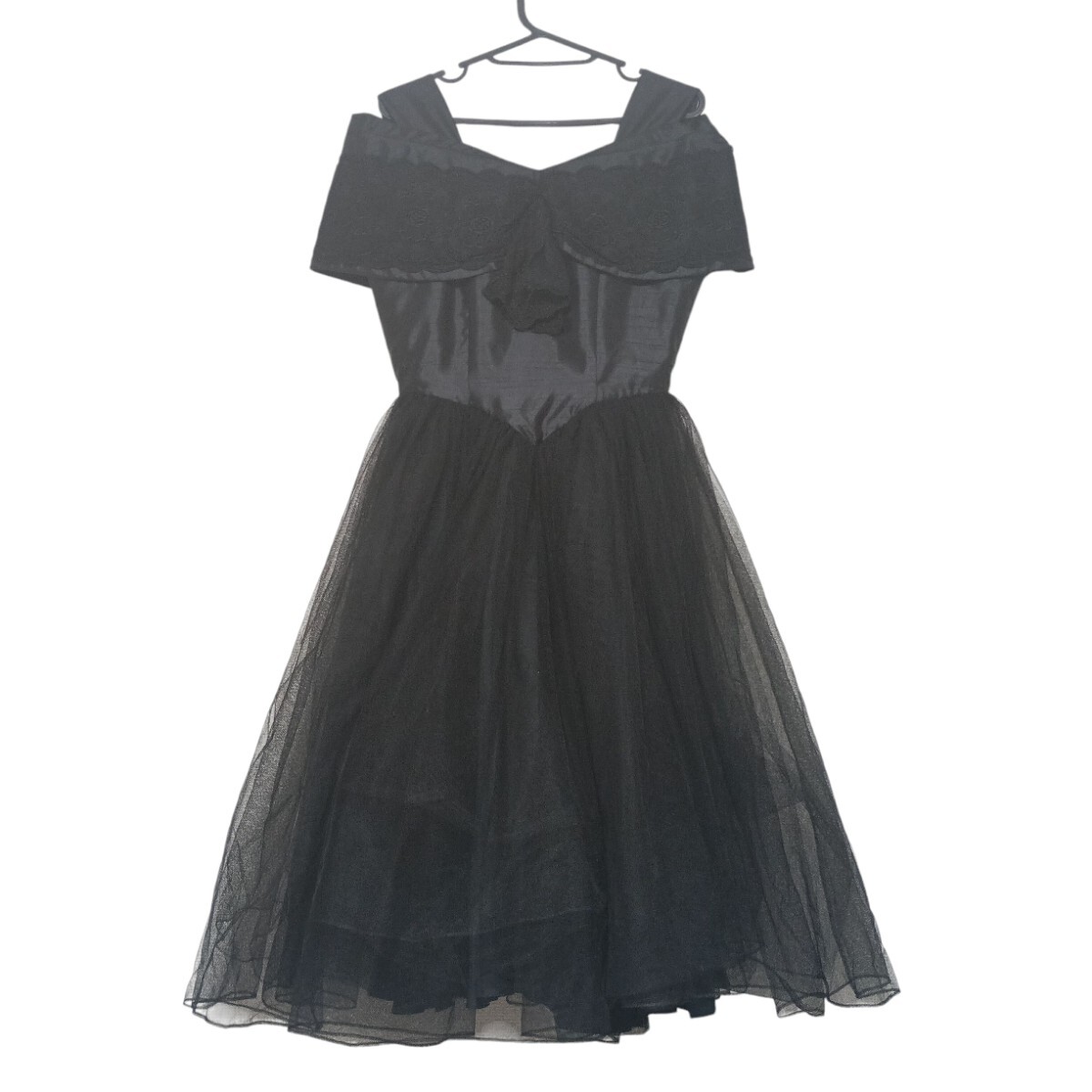 > 美品☆piaisib☆ブラックオフショルダーチュールスカートパーティードレス☆結婚式・キャバ・発表会 カラードレス キャバドレ ブラック