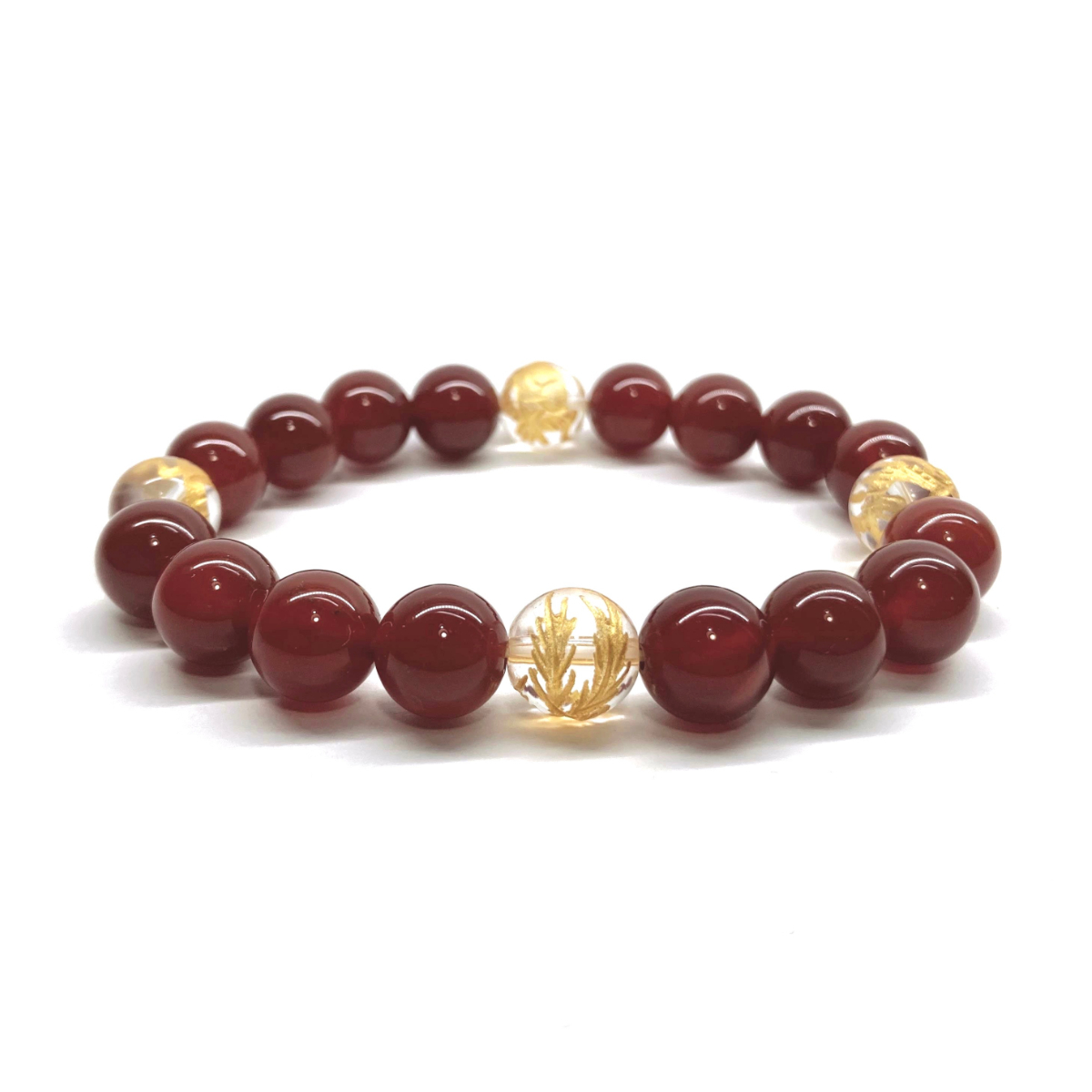 > 10mm 四神獣金彫水晶×赤瑪瑙 パワーストーン ブレスレット天然石 運気上昇 開運 金運 恋愛運 青龍 白虎 玄武 朱雀 シンプル ☆