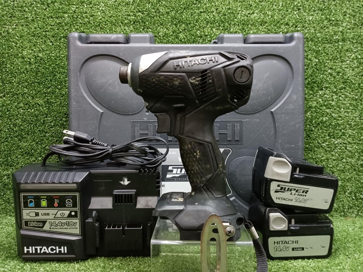 - 中古 現状品 HITACHI 日立工機 14.4V コードレスインパクトドライバ 3.0Ah バッテリー 2個 充電器 付 WH14DKL (2LSCK) (B)