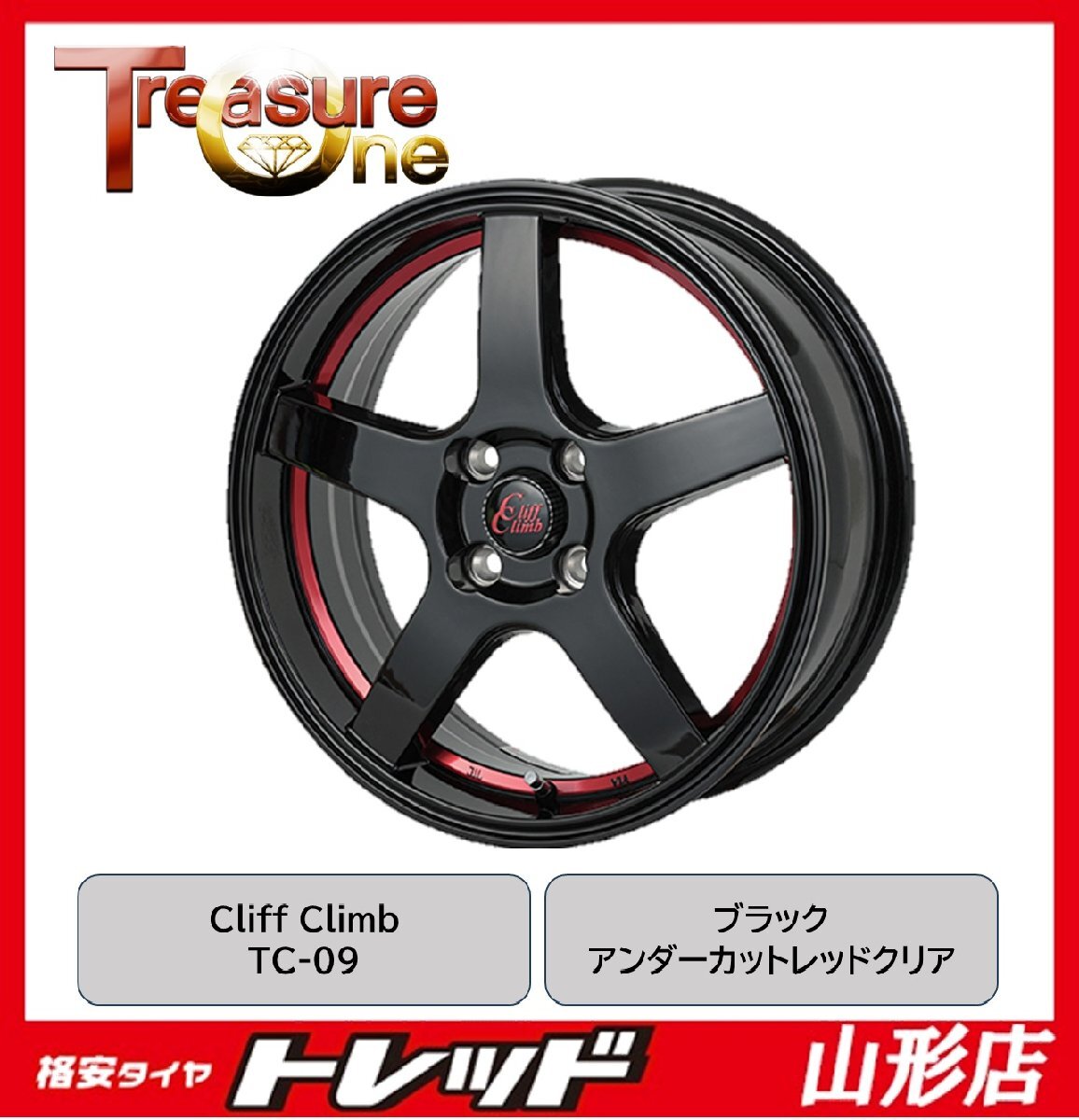 > 山形店 新品 アルミホイール 4本セット クリフクライム TC-09 16インチ 6.0j 4H100 +40 ブラック・アンダーカットレッドクリア フィルダー
