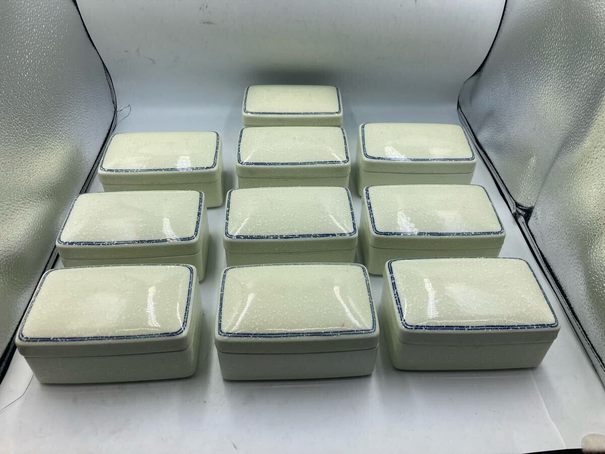 - 京焼 玉手箱 10客 白磁に染付の蓋物 日本料理 懐石料理 刺身皿 先付け 八寸皿 前菜皿 焼物皿色々な用途に使えるお皿です