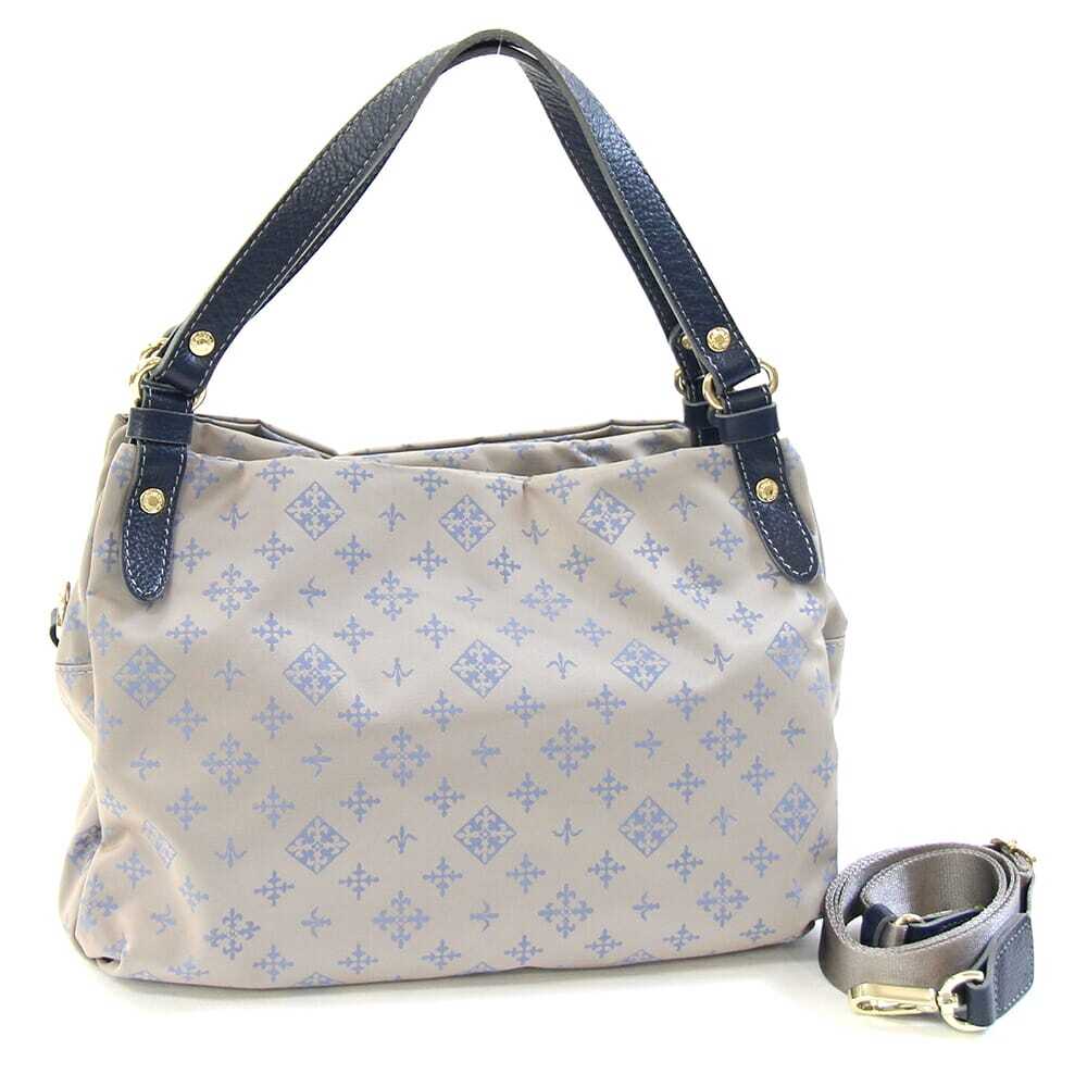 - ラシット 2WAYハンドバッグ ライトグレージュ ネイビー ナイロン レザー 中古 ショルダーバッグ 斜め掛け レディース