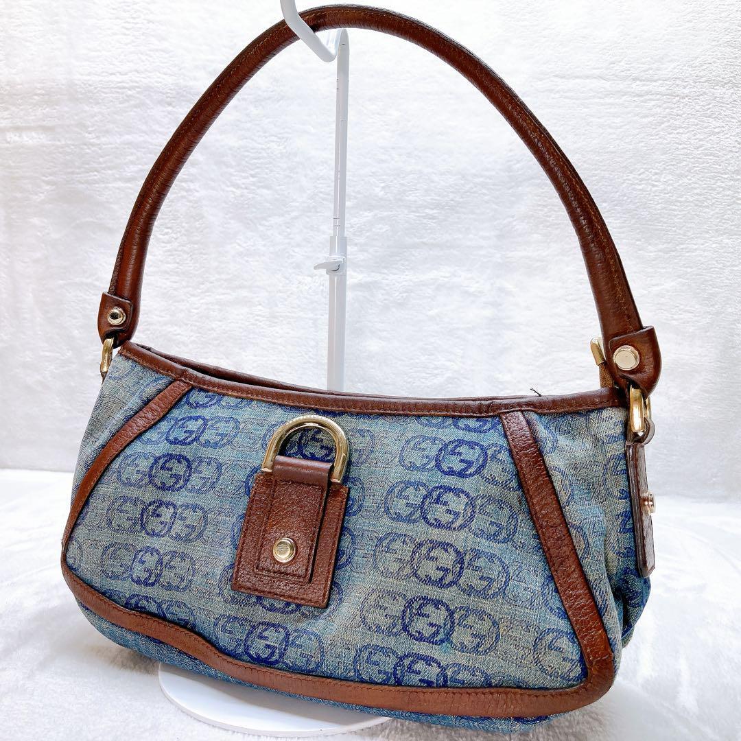 - 綺麗GUCCI グッチ アビー デニム アクセサリーポーチ ワンショルダー