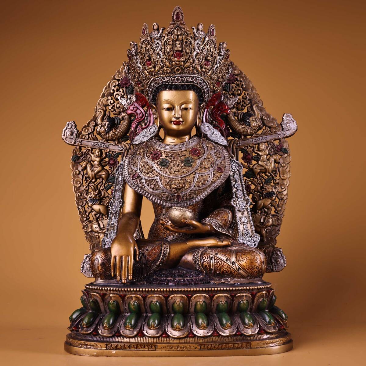 - 9_YF0112【惠】人間国宝 中国骨董 仏教美術 仏像【全銅高浮彫鏨彩色蒔絵覚沃仏仏像1体】 置物 工芸品 時代物 珍品旧蔵 伝世家珍