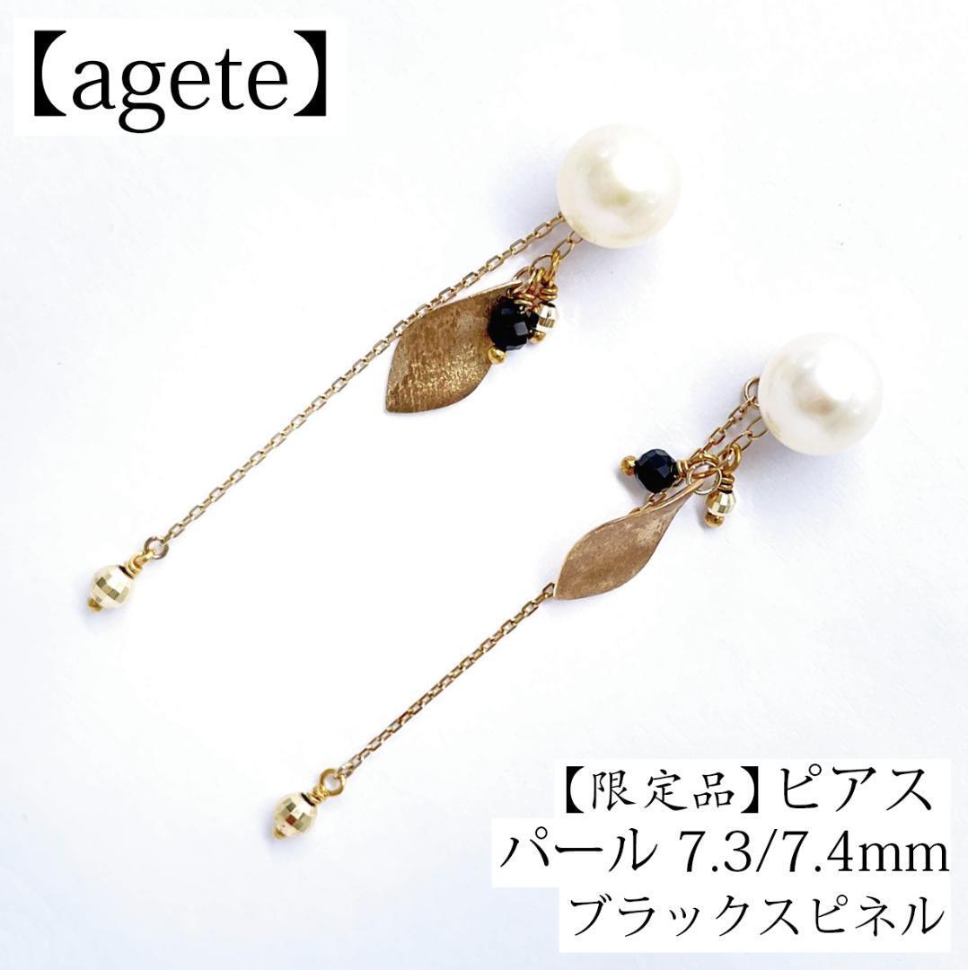 > 限定品 訳あり agete アガット パール 約7.3mm/7.4mm ブラックスピネル ピアス セット K10 ゴールド