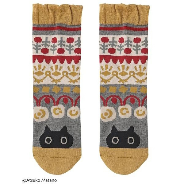 > マタノアツコ/ATSUKO MATANO★ワコール★ソックス/靴下★Mサイズ(22~24cm)★ネコのMEMEちゃん★グレー/GY★俣野温子★日本製