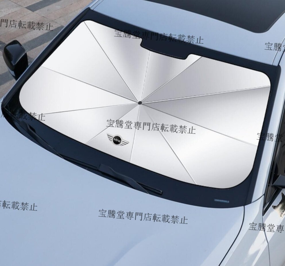- 人気新作 MINI ミニ 傘型 高級 サンシェード 車用 日よけ フロントカバー ガラスカバー 折りた たみ式 6層構造 UVカット99%★収納袋付★