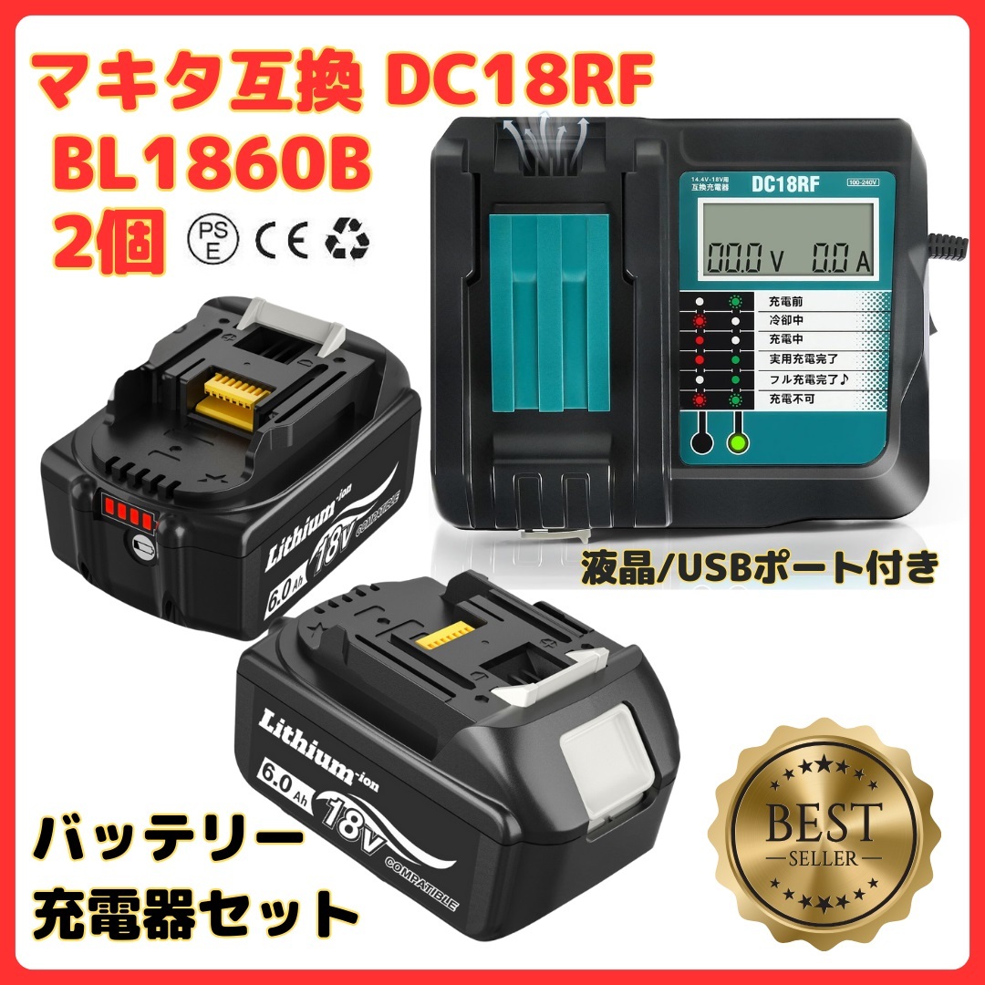 - (A) マキタ makita 互換 BL1860B 2個 + DC18RF 液晶付 充電器 バッテリー セット