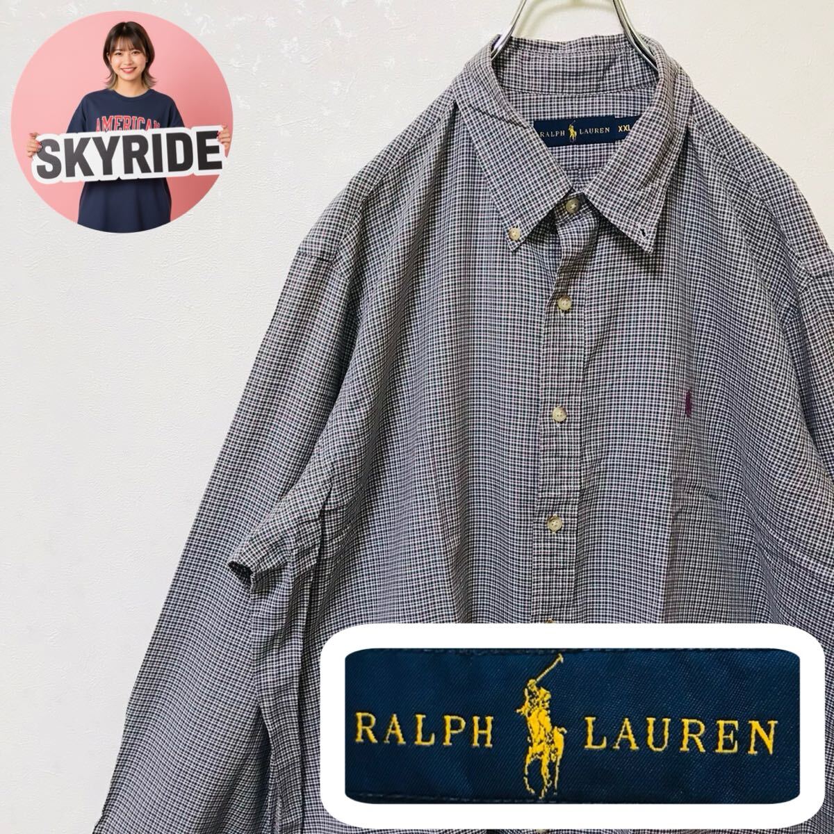 > 【人気】Ralph Lauren ラルフローレン 00s チェック長袖シャツ ボタンダウン グリーン XXL ポニー刺繍ロゴ ビッグシルエット 古着 #TT0340