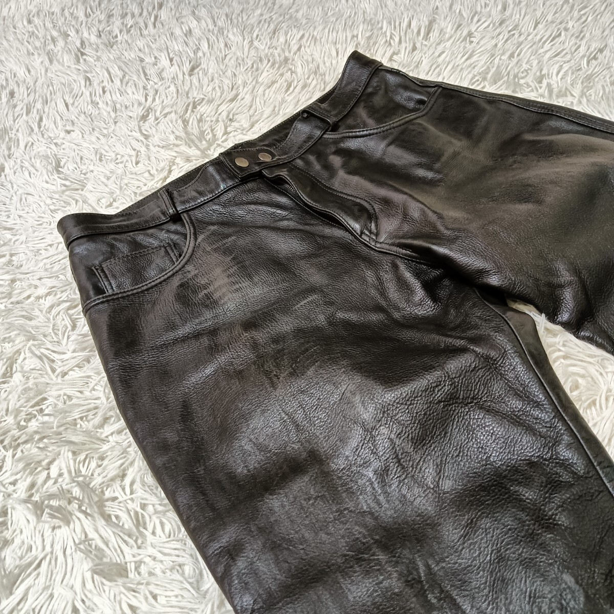 - ★DEGNER デグナー 本革 レザーパンツ ボトムス ブラック 黒系 5P 5ポケット ブーツカット メンズ サイズ34 ルード バイカー 古着 USED