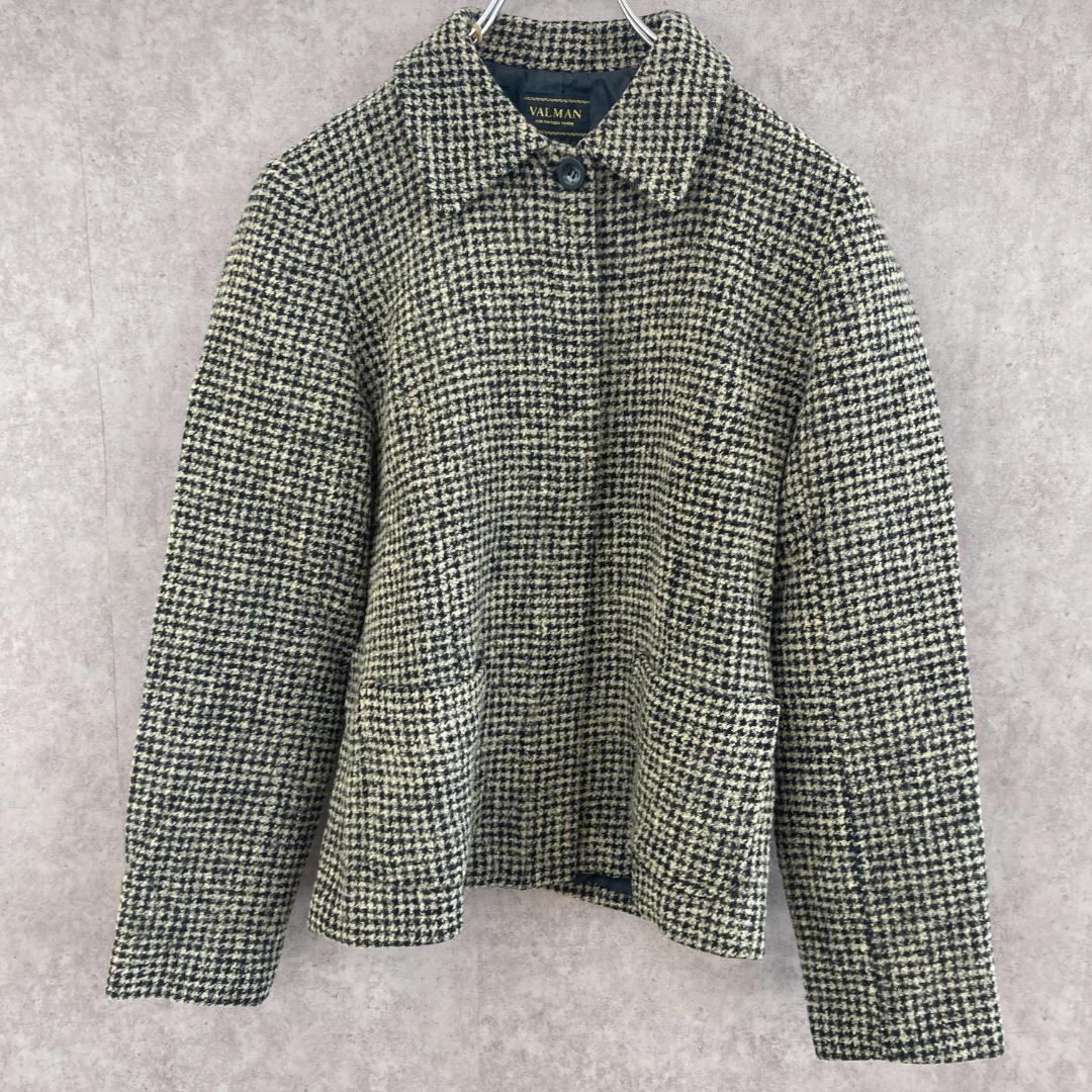 - VALMAN(M)ツイードジャケット*ウール混*フルジッパー*ポケット*裏地*黒