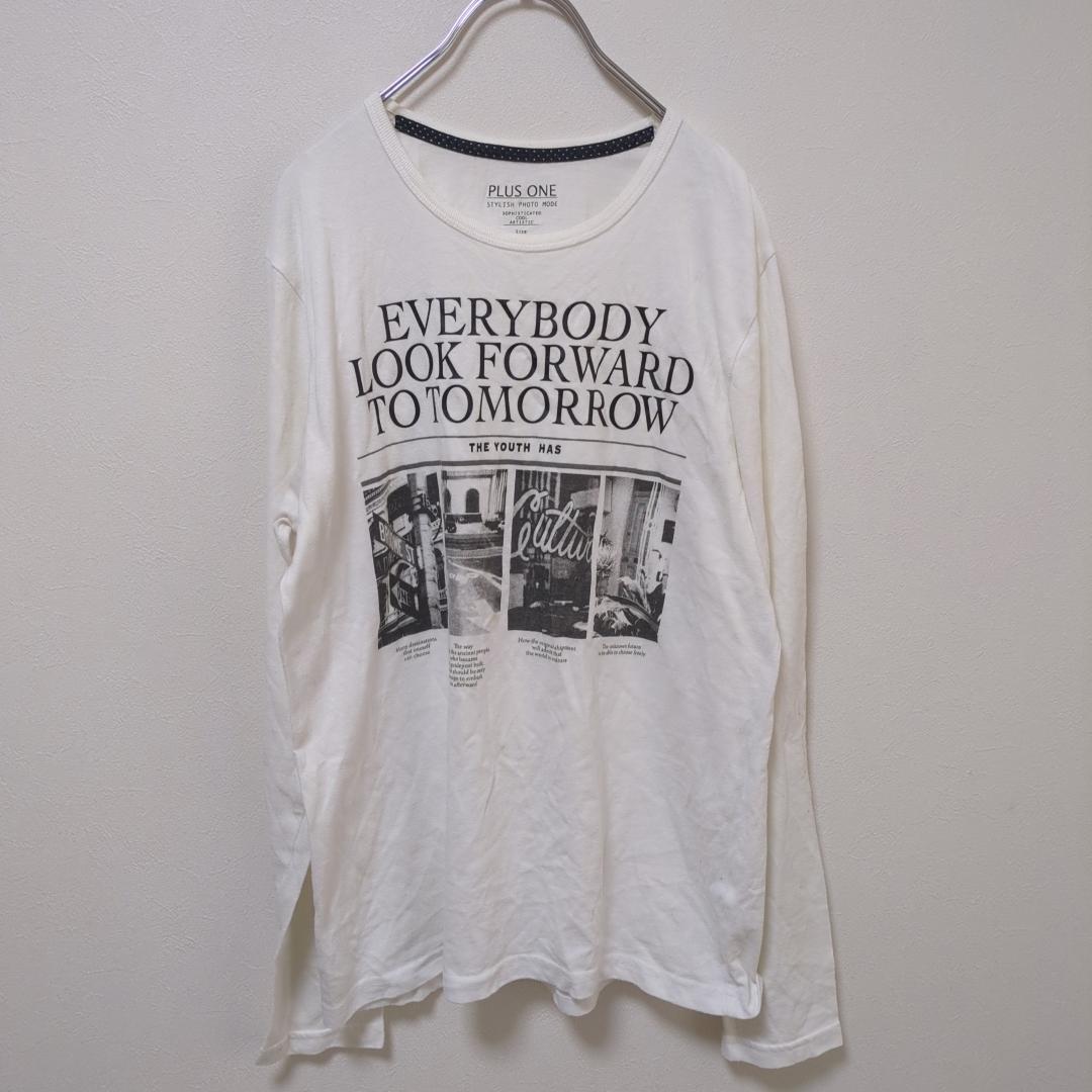 - プラスワン(M)長袖Tシャツ*ロンT*フロントビックプリント*モノトーン*白