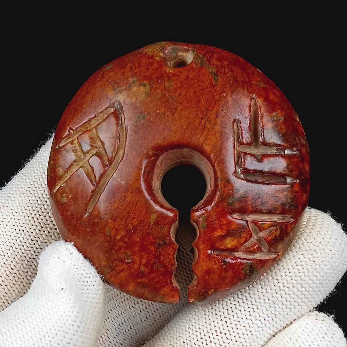 - ★24時間以内発送★収集品 古石器 赤玉 賈湖文化 楔刻文 石 根付 希少